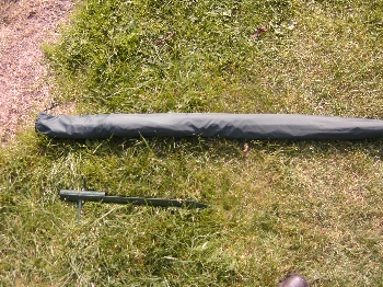 vissersparaplu: diameter: 2.5 m wel niet de allerbeste want kan bij hevige reden vocht (enkele druppels) doorlaten (in mijn geval geen erg een visser daarentegen)