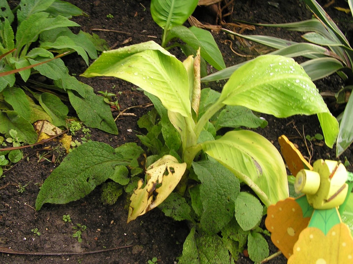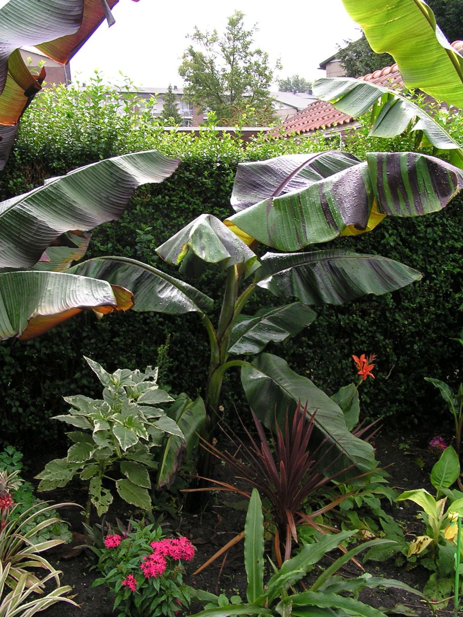 Musa zebrina groeit ondanks het slechte weer heel goed