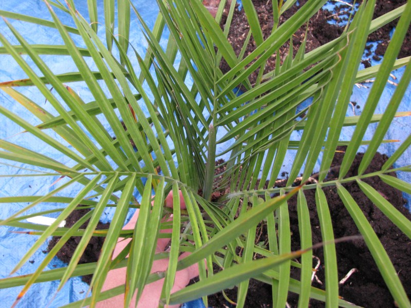 Eind vorig jaar kreeg ik een flesje Palmcare toegestuurd van John (TenJ palms and yuccas). Natuurlijk wou ik dit nieuwe product eerst even testen. Ik had nog twee Jubaea chilensis van ongeveer dezelfde grootte, dus ben ik daarmee in de lente van dit jaar aan de slag gegaan. De bevindingen zijn best positief! :thumb_up: