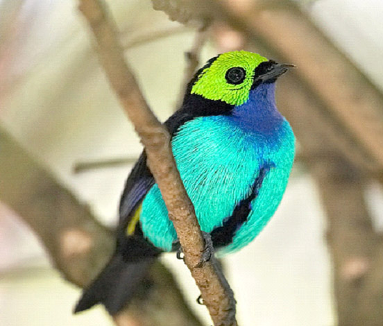 Dit raakt bij mij een gevoelige snaar...Vele jaren heb ik vogels gehouden.En dan vooral soorten uit de groep der vruchten- en insekteneters.Destijds moest ik daar door serieus tijdgebrek (ander werk) mee stoppen.Momenteel is het zo dat door allerlei wettelijke beperkingen deze hobby nagenoeg onbetaalbaar is geworden.Mijn specialisme was vooral de familie der Tangara's.Onderstaande foto toont de Paradijstangara (Tangara chilensis),door velen beschouwd als de mooiste soort,maar er zijn zoveel juweeltjes binnen deze familie,dat daarover best gediscussieerd kan worden...