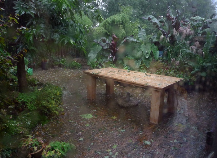 Steeds de dans ontsprongen met het weer, alles overleefd. Tot vandaag...en korte maar hevige hagelbui van, ik weet nog niet eens hoe lang die duurde....met onderstaand effect.