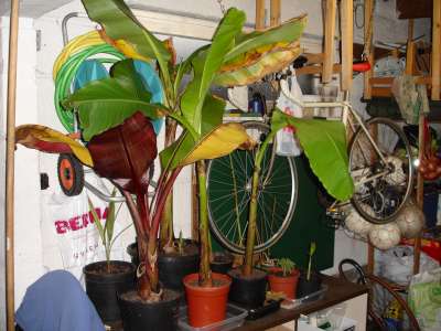 de ensete daar moet de wortelkluit zo droog mogelijk van overwinteren en ik heb ook geen bladeren verwijderd,dus waarschijnlijk komt het daardoor dat de onderste bladeren eerst beginnen te verdrogen maar dat zou voor de plant op zich geen probleem mogen zijn,de M. Sikkimensis heeft ook een beetje dat probleem maar die geef ik af en toe een klein beetje water,de andere musa's zijn stekken.