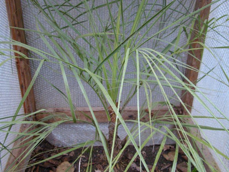 - sabal minor, beschermd met een bigbag, vandaag de middenste speer kunnen uittrekken..