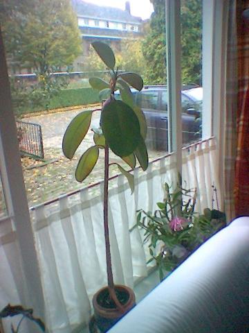 ze is nu een zielig steeltje ( plm 60 cm) aan het worden met een toef bladeren bovenop.