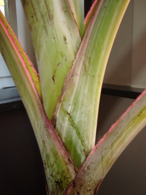 Op de ruilbeurs van Canna Banana ben ik de trotse eigenaar geworden van een bonte Musa. Merkwaardig dat er niet meer interesse voor was want de plant (samen met zijn grotere broer) stonden er al enige tijd alvorens mijn oog er op viel. Volgens de verkoper zou de moederplant zijn meegebracht uit de Philippijnen en zou het om een Musa Icecream variegata gaan. Persoonlijk dacht ik eerder aan de Musa aeae 'Florida' maar ik ben ook geen specialist he. In ieder geval kan ik over de icecream variegata niets terugvinden. Wat denken jullie er van?