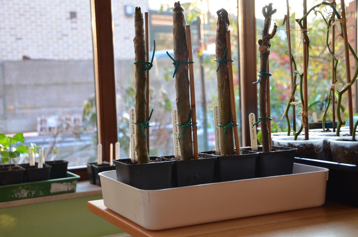 De Plumerias zopas gestekt in een mengsel van cactusgrond en perliet . De stekken lichtjes op de bodem geplaatst en een stevige stok ernaast om ze netjes recht te houden, zie foto hierboven. Geen extra water gegeven, enkel wat er in de cactus grond en perliet aanwezig was. De stekken zelf een beetje besproeid en de bodem verwarming op 27°C gezet.
