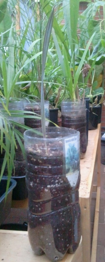 Van de 20 stuks zijn er 16 uitgekomen en deze heb ik in plastiek flessen van 2 liter gepland.