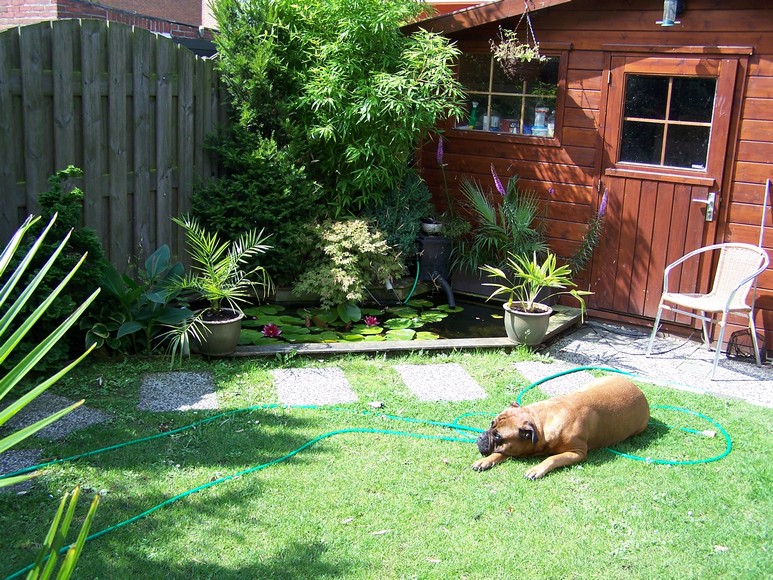 Hierbij nog twee foto's en het ontwerp van de tuin. Ik moet nog de vijverrand
