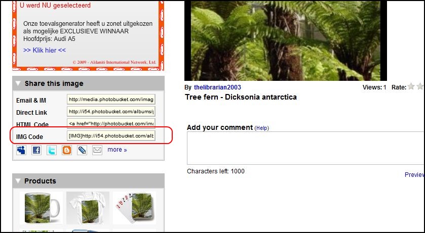 1) Ga naar Photobucket naar klik op de foto die je op het forum wenst te zetten