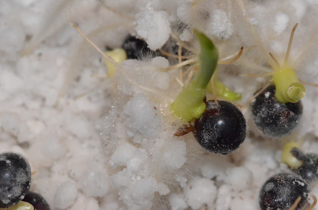 Mijn methode: had ze al een paar weken in de koelkast waar ik trouwens alle zaden bewaar. De zijkant, dus niet waar de kiem zal uitkomen, met schuurpapier (00) bewerkt tot ik een klein beetje wit zag. Daarna op perliet ( goed vochtig) oppervlakkig " gezaaid". Bij 30 °C in de propagator, 3 dagen later 100% kieming. Niks voorweken. Heb op hetzelfde tijdstip idem gedaan met C. wyoming, daarvan had ik maar 3 zaden van eigen kweek ( waarvan 2 met een dubieuze kleur). Daar heb ik nu ėėn plant van.