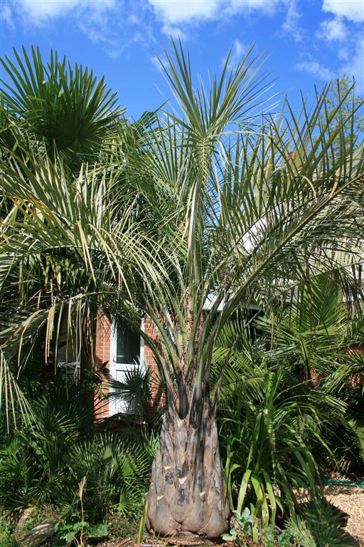 Er stond inderdaad ook een grote Butia in de tuin, die overigens wel met een flinke stam was geplant en dus niet vanaf het begin aanwezig.