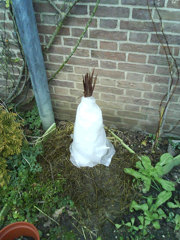Vorige week zaterdag voordat het zo ging vriezen heb ik alles ingepakt. Voor de eerste keer heb ik alles maximaal ingepakt zover ik kan aangezien ik pas sinds lente 2011 begonnen ben met exoten in de tuin.