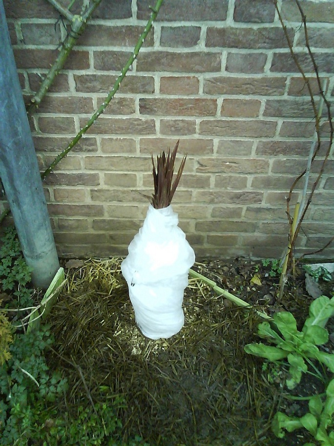 Ondanks de goede pogingen alles in te pakken heb ik voor de cordylines een andere aanpak gekozen: