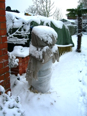 Bovendien is sneeuw juist een perfecte isolatielaag! Zolang het niet te zwaar wordt voor de plant zou ik dus lekker laten liggen.