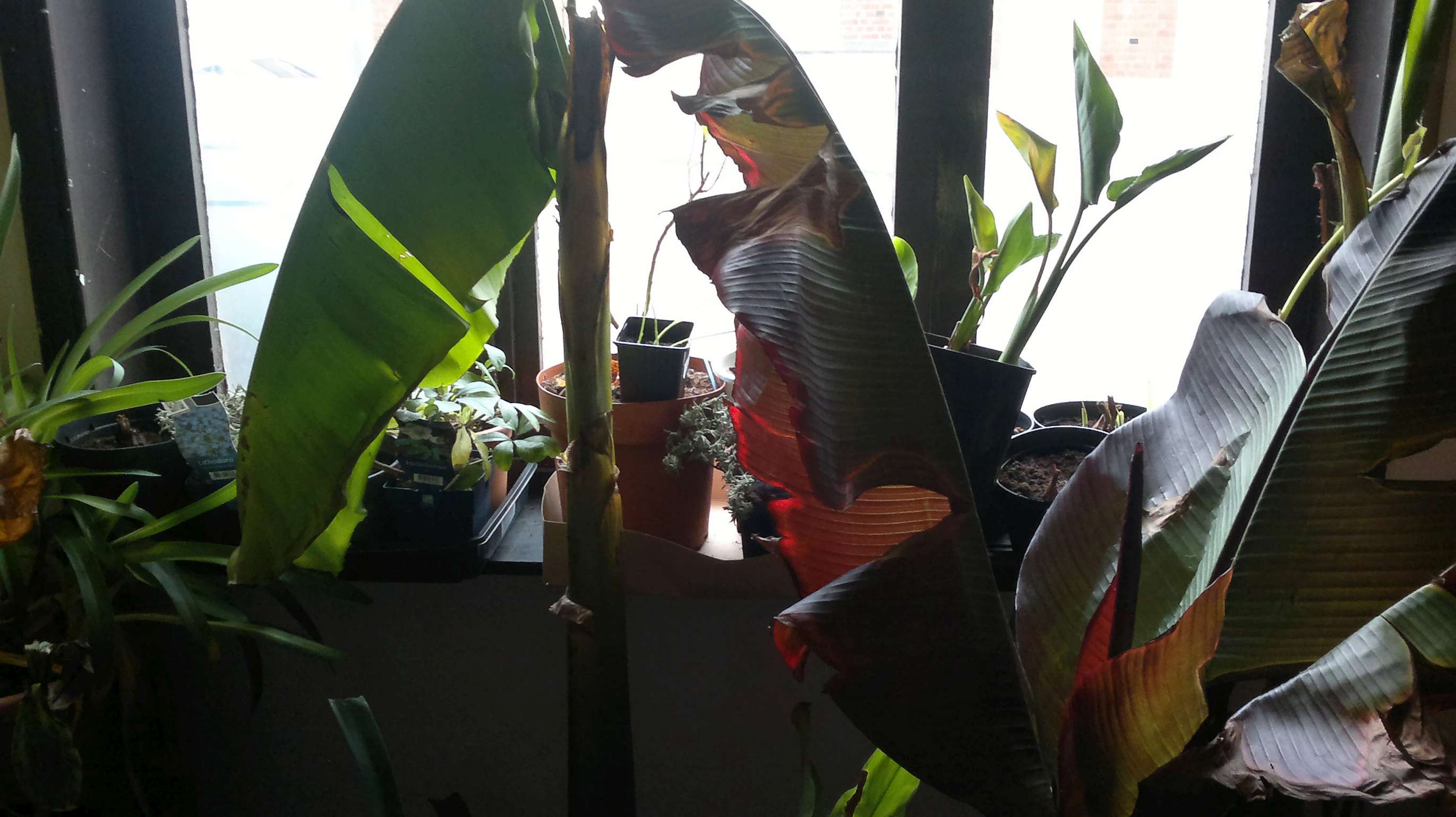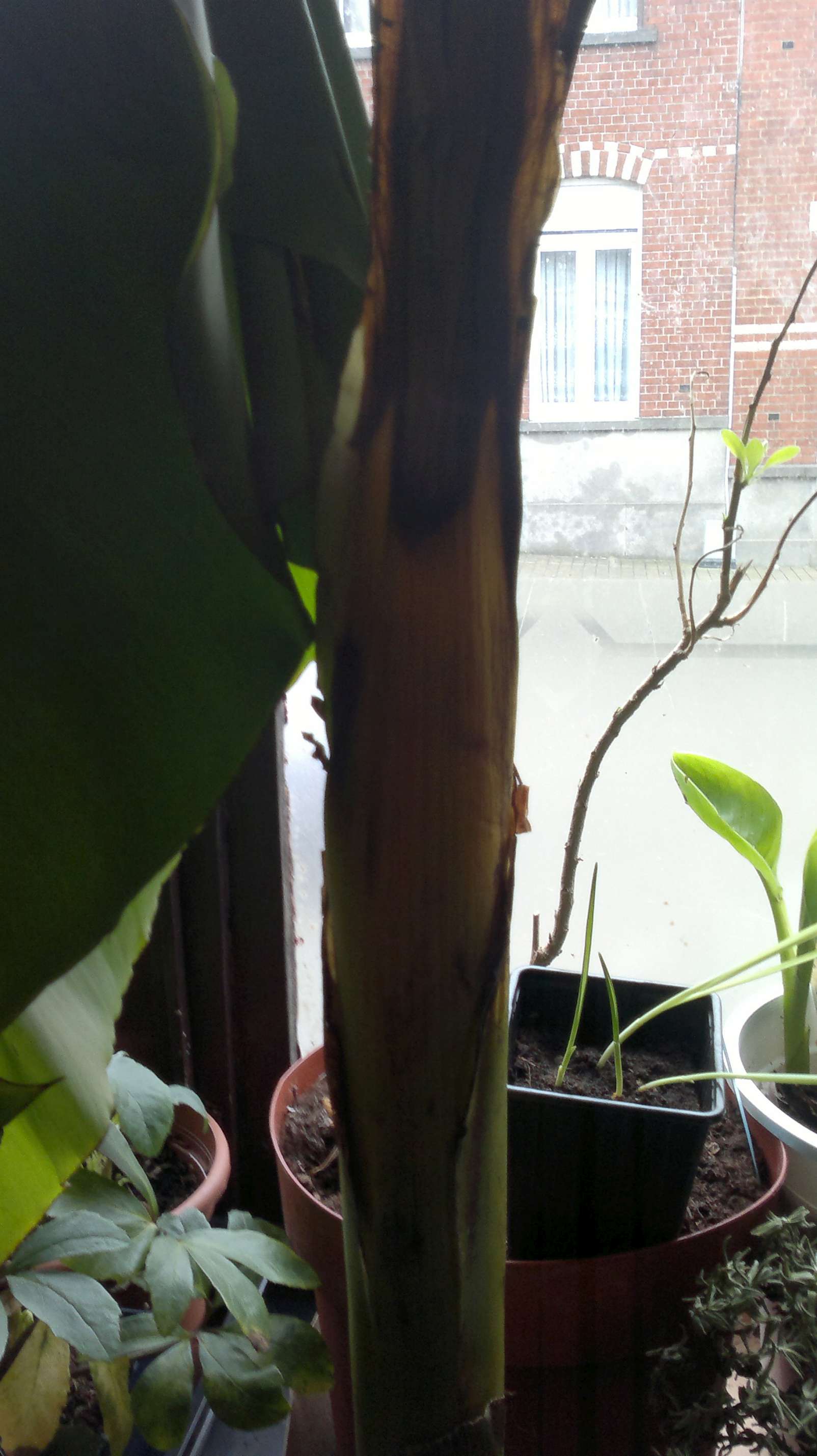 Geruime tijd staan mijn musa basjoo, sikimensis, Maurelli en andere bananen volledig droog te overwinteren in de voorkamer. Soms wordt ze verwarmd maar meestal is het ginds rond de 12 °C.