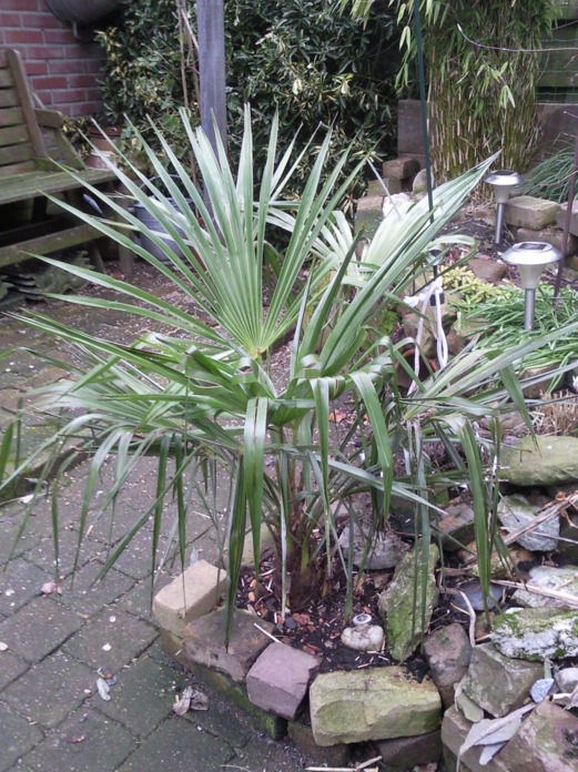 de andere trachycarpus die ik heb ziet er ook nog goed uit ook met 2 nieuwe speren.