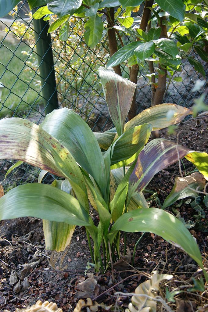 Aspidistra elatior - beschermd en onbeschermd - klein beetje bladschade