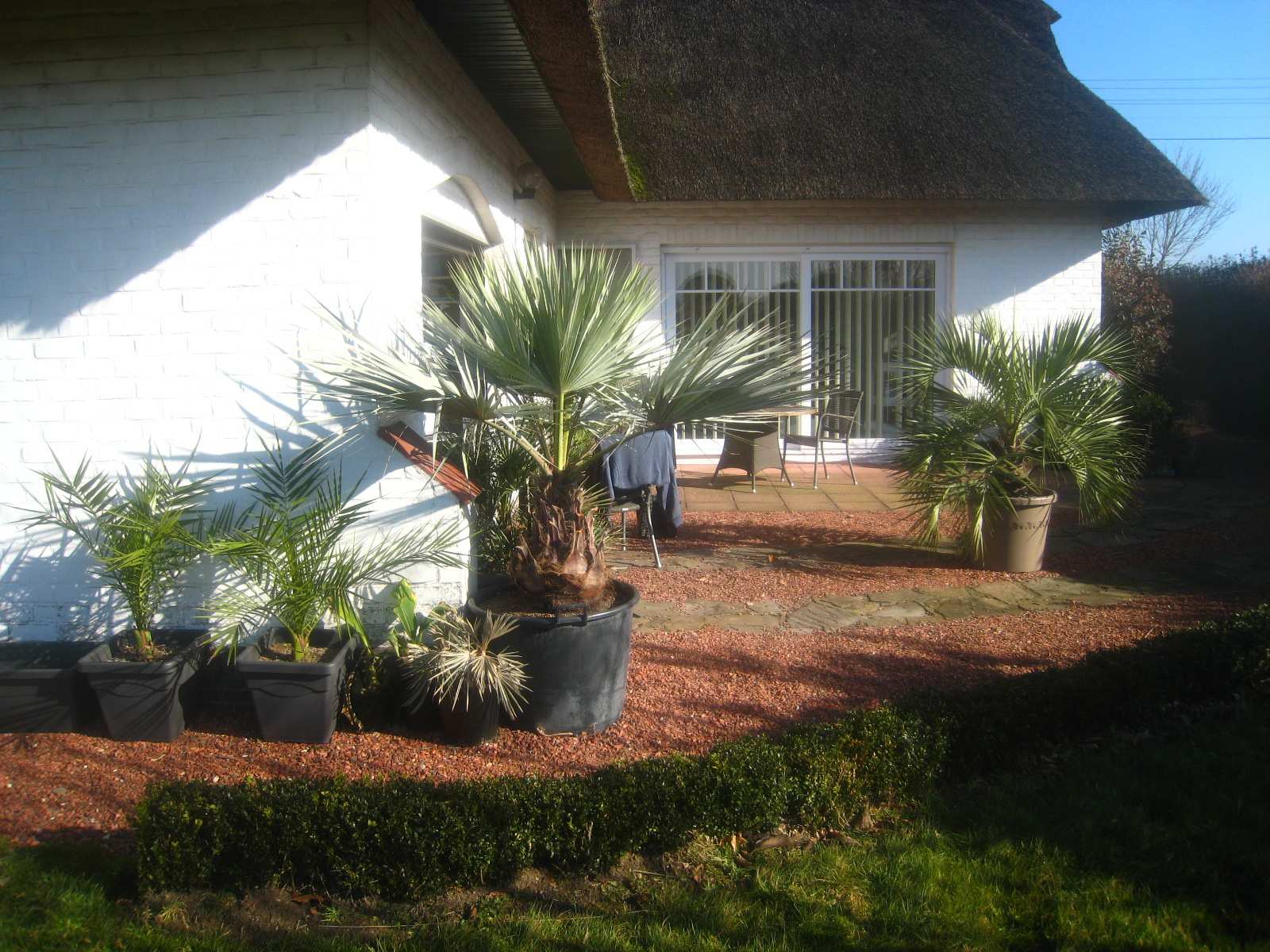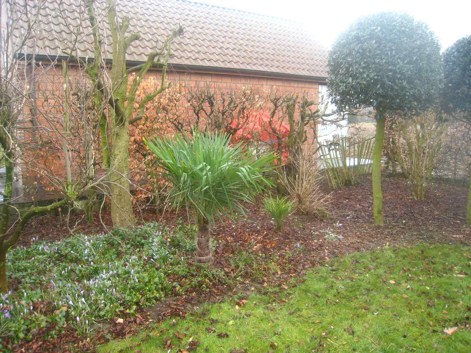 Na een jaartje actief te zijn op dit leuke forum, dan toch ook maar eens mijn tuintje in aanleg laten zien. Sinds vorig jaar begonnen met enkele kleinere exoten en palmen uit te planten en die lijn word dit jaar door getrokken, daar ben ik vorig weekend trouwens mee begonnen. Voorlopig werden er 4 nieuwe trachy's, 1 kleine jubaea, 1 agave montana en 3 kleine yucca filamentosa "golden sword" uitgeplant. Nu komen er ook nog een armata, een grotere jubaea, enkele soorten canna's enz bij.
