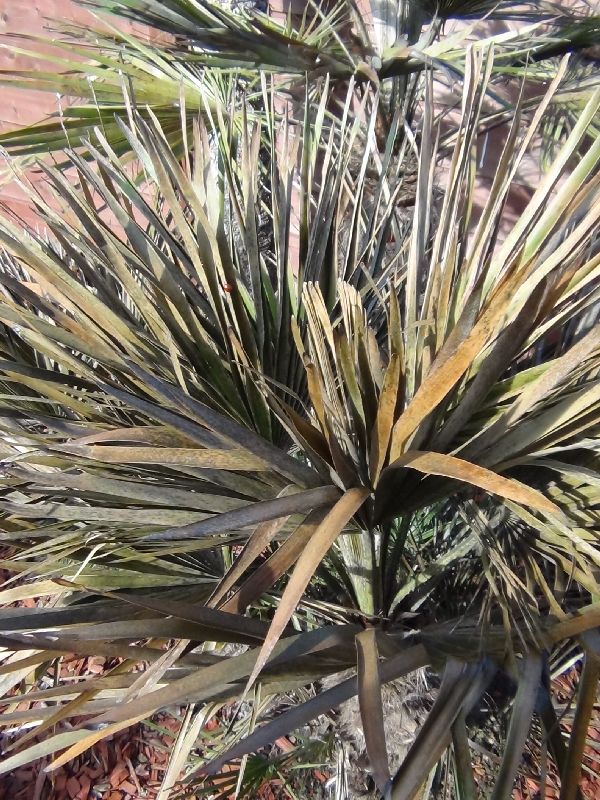Chamaerops ,2 jaar niets van schade ,dit jaar bijna alle bladeren vries schade