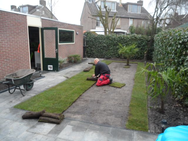 Het weekend daarop heb ik samen met mijn broer grasmatten gelegd dit omdat je gelijk resultaat hebt en in mijn tuintje kost het echt niet veel.