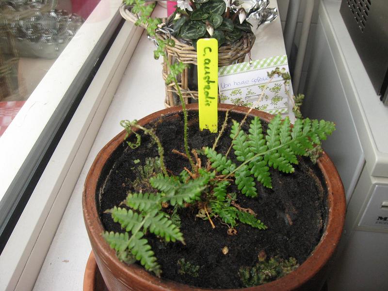 Hallo Ron, is er een warmte bron onder die vensterbank ? ik vind hem nog al aardig uitgedroogd uitzien! En vind ik de maat pot ook te groot voor zo'n klein plantje, eigenlijk mag je pas groter zetten als de wortels uit het bestaande groeien ! En dan verdubbel je pas , en wat natuurlijk het allerbelangrijkste is ,is dat je hem binnen hebt staan ! Eigenlijk moet hij in een koude stalling staan in ieder geval onder de 10 gr. dan is de luchtvochtigheid ook meteen een stuk hoger [bij mij 90% in de stalling] en dat haal je binnen nooit of maar kortstondig en moet ik ook vragen of jij ook kleine vliegjes ziet [ varenrouwmug] want met die aantasting vind ik het verdacht uitzien, Je zult wel contact gehad hebben met Ro ? Misschien dat hij het nog verder kan aanvullen ! Ik wil nog wel aangeven mocht je geen stalling hebben je hem beter op een koele slaapkamer kunt zetten op het n/oosten dan komt hij misschien nog tot rust en kan hij weer gaan uitlopen in het voorjaar!