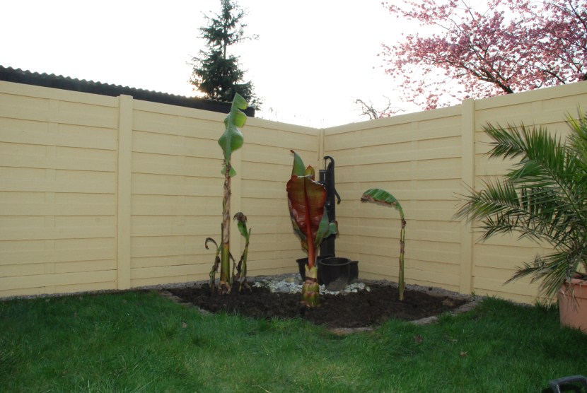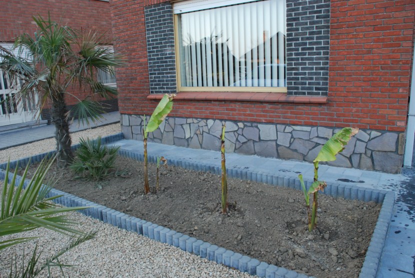 Naast Basjoo's een Chamaerops humilis,winter overleeft door alleen tentje eromheen.