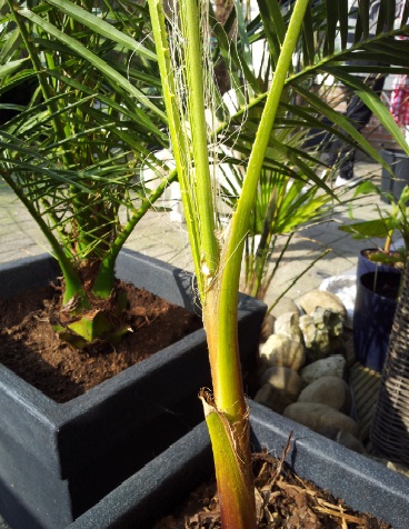 De washingtonia robusta krijgt ineens geel blad, en het onderste blad knijpt helemaal dicht.