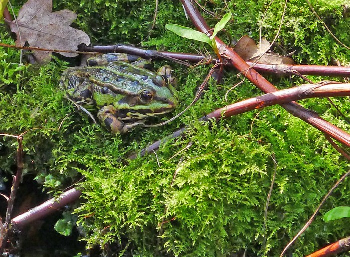 hier bruine en groene kikkers, vorig jaar kikkerdril in de vijver gezet (gelegt hoe zeg je dat) dus ik hoop dit jaar dat de groene en bruine kikkers hun kikkerdril achterlaten in onze beek, daar zou ik heel blij mee zijn, maar ik zie nog helemaal geen teken van leven.....Wel een paar bruine en groene kikkers gezien, maar verder zeer weinig activiteit.... Jammer dat het zover is Erna ik had graag willen hebben.