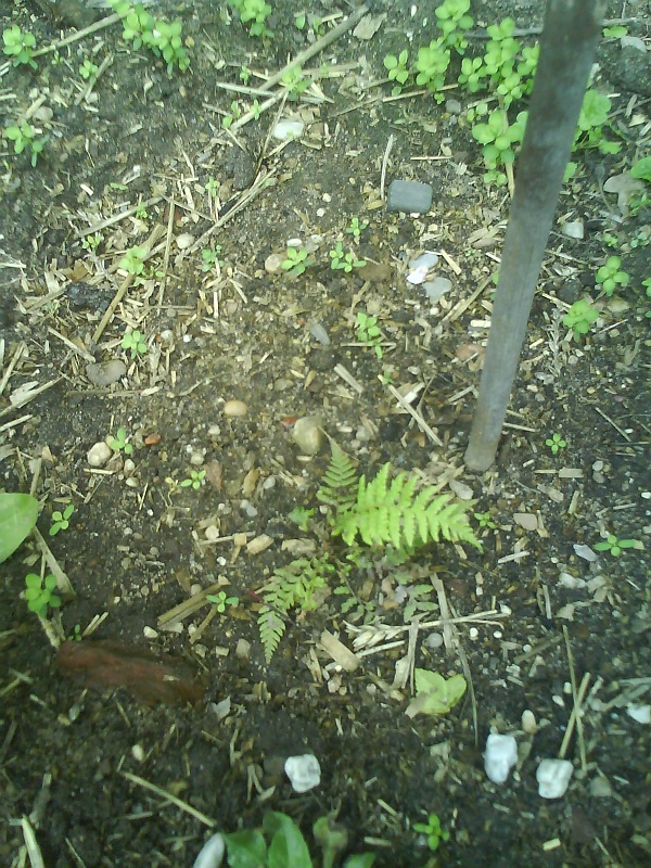 Mijn regenboogvaren (Athyrium niponicum pictum), december geplant, heeft al heel wat blad aangemaakt.