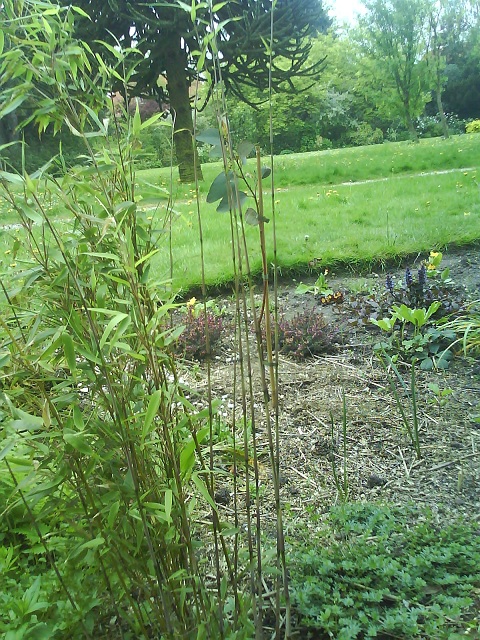 Nieuwe stengels van mijn Fargesia rufa die hun 'ouders' al aan het inhalen zijn in hoogte.