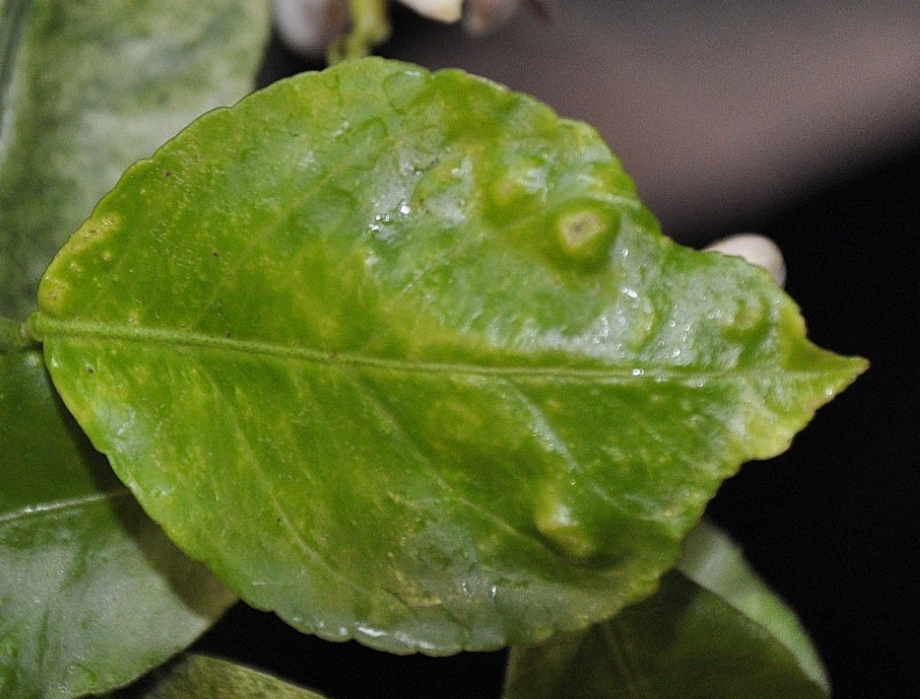 Bijgaand een foto van de vreemde bobbels op de bladeren van mijn citrusboompje.