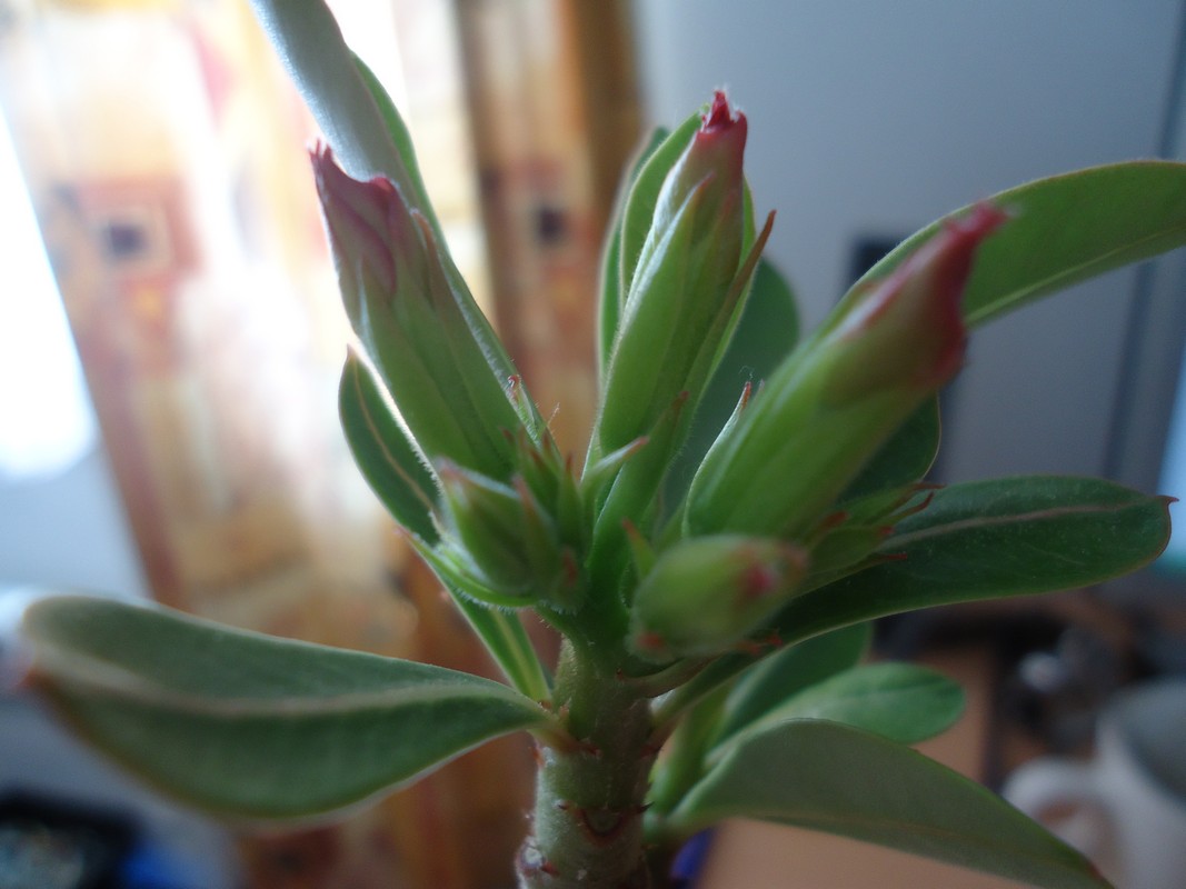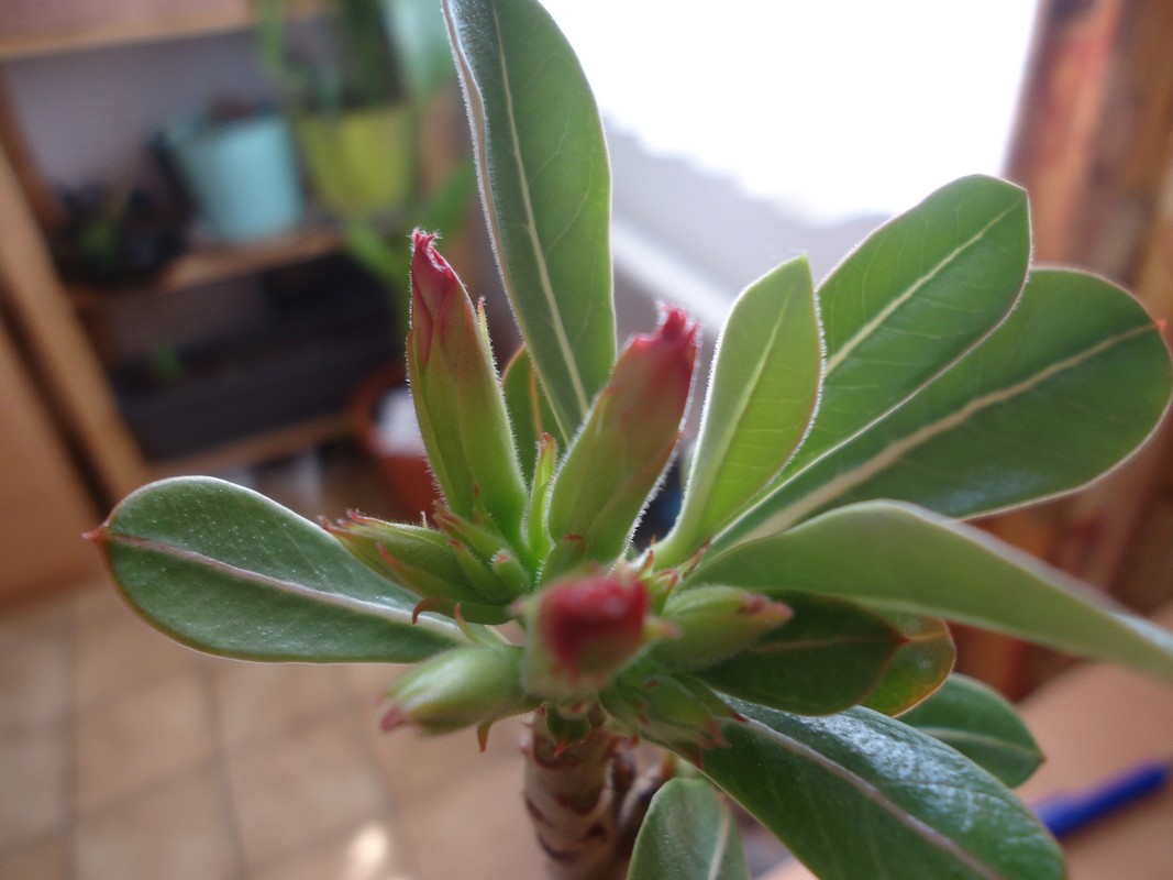 Er is niet zo veel verandering, maar ik heb wel bij een andere Adenium ook het begin van bloempjes ontdekt. Wel nog te klein om te fotograferen. :mrgreen: :thumb_up: