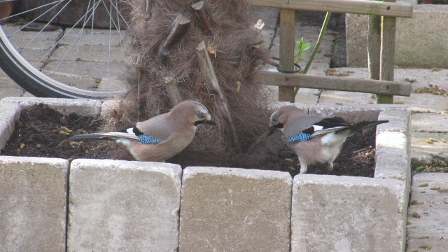 Hier ook merels en mezen die m'n trachy's aan het kaalplukken zijn, ideaal nestmateriaal blijkt :D