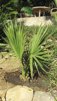 hier mijn manipur die rechtstreeks in de tuin werd gezaaid in 2008. sterke palm als je het mij vraagd. vergelijkbare schade als mijn grotere fortuneis maar in vergelijking met fortuneis van ong. dezelfde grote en leeftijd lijkt me deze veel sterker....de enige palmen van vergelijkbare grote die geen schade hadden waren in de tuin gezaaide fortunei, wagnerianus, nani tal en S. minor.