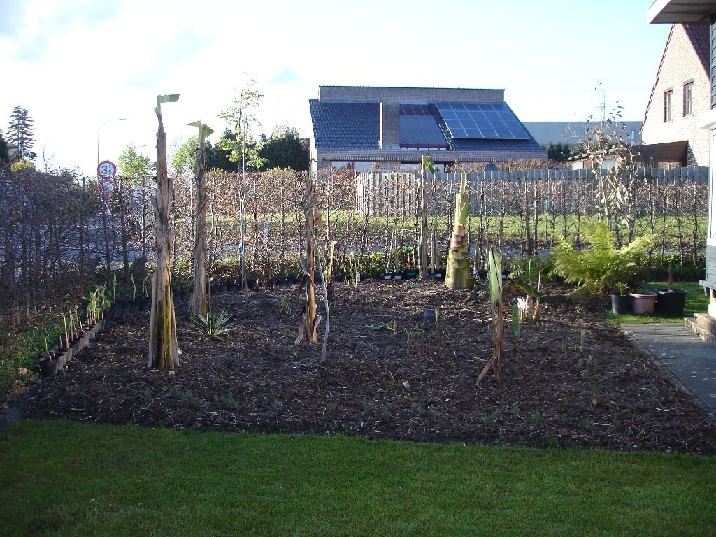 ik heb nog een paar fotootjes genomen vandaag en dan toch begonnen met de bananen in volle grond te zetten.