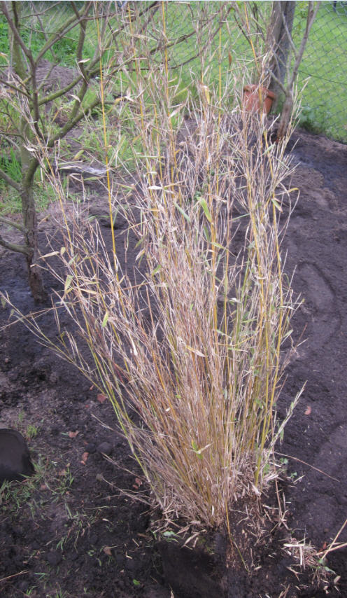 Toen ik compost ging halen bij een stortpunt voor tuinafval vond ik daar een pol van bamboe. Toen ik een medewerker vroeg of ik de plant mocht meenemen was dat geen probleem.