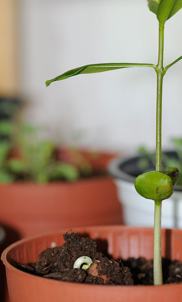 Ik had in 1 pot de peul volledig gestopt en er 1 open gemaakt en enkel het zaad geplant, nu komt de tweede uit (6 weken na de eerste in de pot... :shock: )