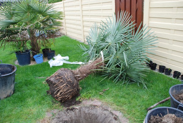 Plantgat waar al redelijk veel wortels aanwezig waren van de vorige bewoner (Trachycarpus) :)