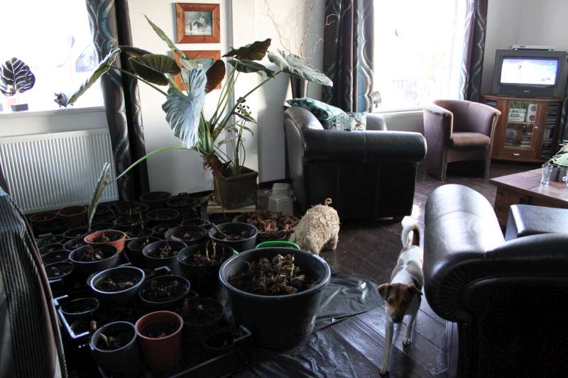 Als ik zoveel potten in de woonkamer had staan, brak hier een wereldoorlog uit, verslaafd of niet :shock:
