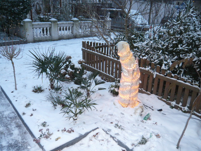 Vliesdoek in de kroon, thermozak over de hele boom tot aan de grond, en dan van beneden naar boven een lichtslang, die alleen bij -5 en lager aanging.