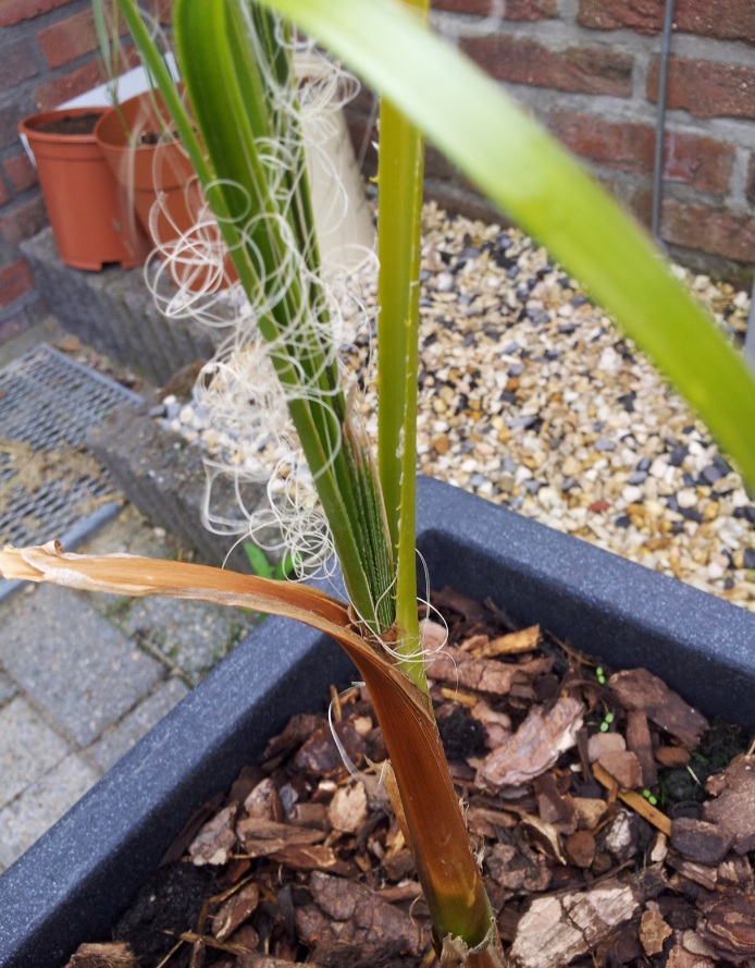 Zoals je op een foto kunt zien, was de speer helemaal bruin maar er komt een kleine groene speer aan! Wel heeft deze ook al wat bruin! De stam die je erachter ziet krijgt weer groen. Neem aan dat dit een teken van groeien is?