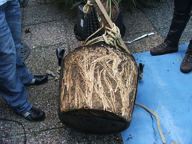 @ zwemparadijsje, ik doe dit omdat ik zeker wil zijn dat hij genoeg nieuwe wortels kan vormen en het kan evengoed zijn dat het 80 op 80 op 80 gaat worden. Eerst bekijken hoeveel wortelkluit hij momenteel heeft, stond beschermd in een zak maar zag er vrij groot uit.