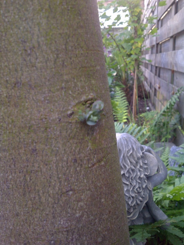 Ik heb prezies hetzelfde er na ik wilde hem ook bijna gaan uitgraven maar toen ondekte ik dat de eucalyptus debeuzeville van 3 jaar oud op de stam aan het uitlopen is en niet zo klein beetje ook.