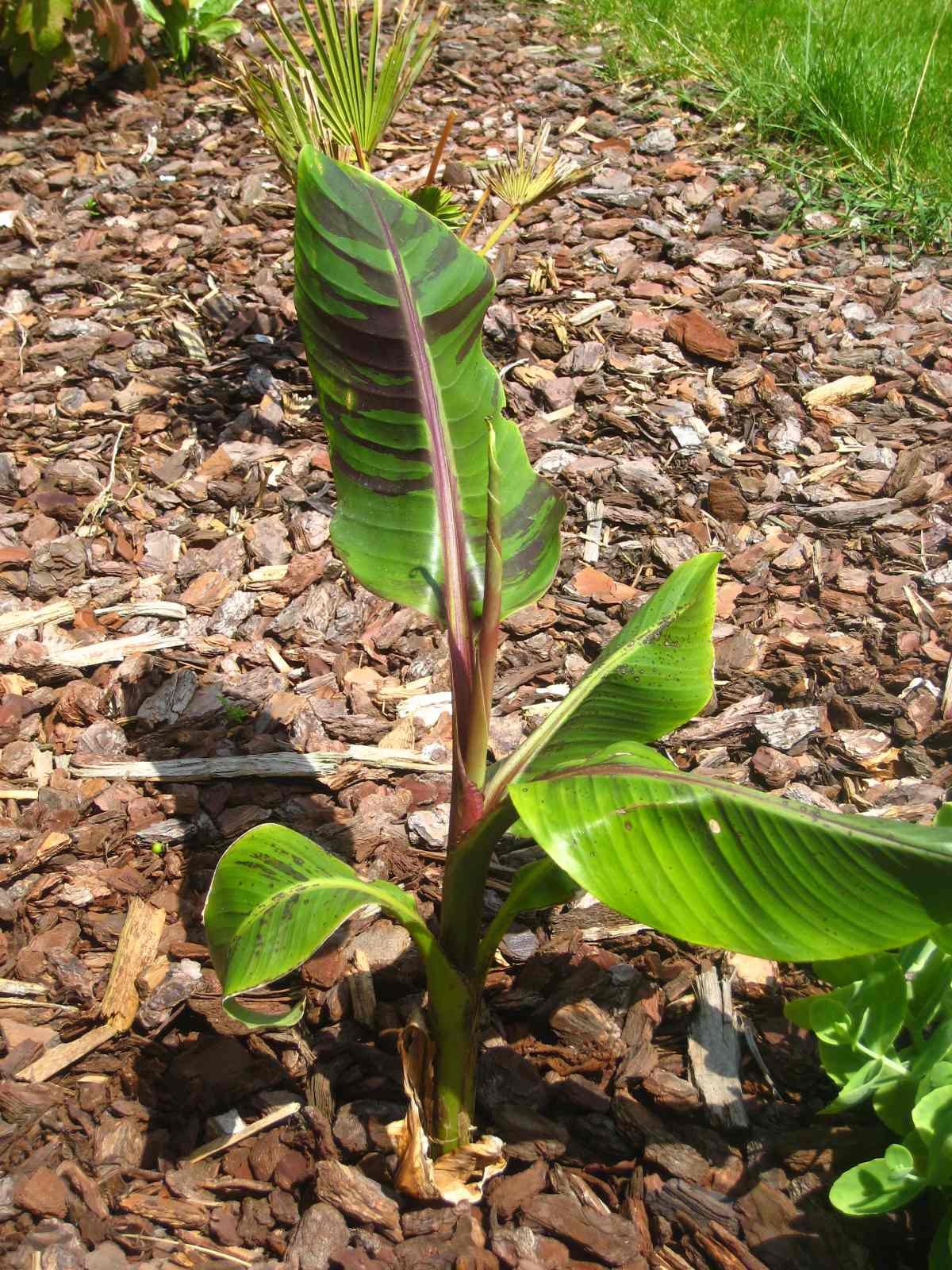 Na dit tropische weekend zien de planten er gelukkig beter en beter uit, enkele herstellen goed anderen blijven dan weer steken. 2 van de 5 kleine trachy's zijn aan de groei, 2 zijn dood en van 1 weet ik het niet, blijven duimen dus :thumb_up: Ook de brahea is goed bezig, jammer van de schade! anders was hij al bezig aan zijn derde blad :shock: