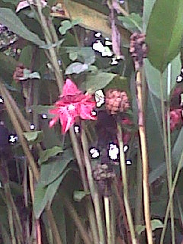 nog enkele bloemen die ik helaas niet ken, maar daarom niet minder prachtig zijn. deze staat naast en regenwaterton in de nootmuskaat plantage.
