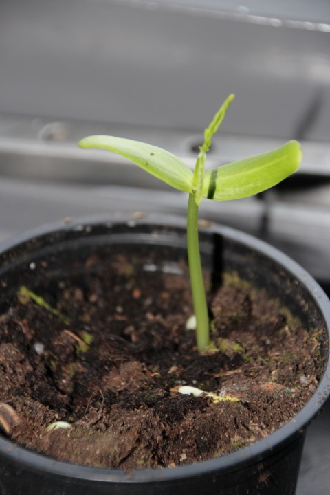 eerst schuur ik langs de kromme kant een stukje weg totdat ik wat wit zie, handig met een dremel ,ofwel voorzichtig aanprikken maar gezien de gladde harde buitenkant zijn het je vingers die de prikken vangen . dan laat ik de zaden weken in handwarm water in een thermos ongeveer 4 a 6 uur dan kijk je en zie je dat het zaad volledig is opgezwollen . eenmaal ze zijn opgezwollen niet verder laten weken dan een half uurtje laten drogen en in vochtig zaai en stekgrond , warm (kamertemperatuur) wegzetten overspannen of afdekken om vochtigheid te bewaren . eenmaal ze opkomen op een lichte plaats zetten maar geen volle zon , na een paar weken bekom je zoals de foto hieronder , mocht het je niet lukken heb ik hier nog vers zaad liggen