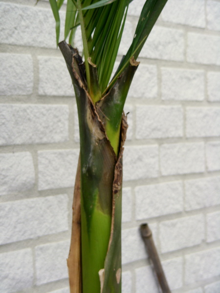 Ik zag dat de palm begon te scheuren in de stam, is dit een teken dat oude bladeren aan het afstoten is?