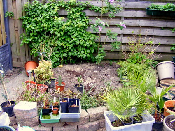 Ik ben heel benieuwd hoe het gaat worden, best raar om nu dat het meeste de volle grond in gaat. Het is de eerste keer op deze manier maar dat gaat vast goed komen. Nu de achteruin verder af maken, in de achtertuin komen verschillende Eucalyptussen, Vijgen, fortunei van Olie, Albizia en natuur de alocasia's. Volgende week de palmen oppotten en straks de de Archontophoenix alexandrea naar buiten! :D