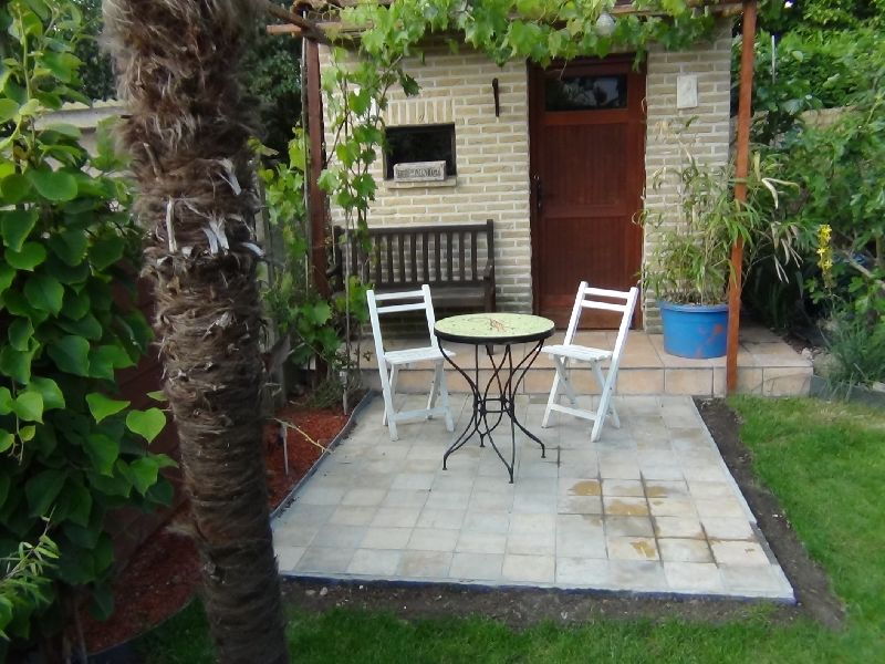 hier wat nieuwe foto's van de tuin ,er is een klein terrasje bijgekomen vanachter in de tuin dan nog enkele nieuwe palmen enz