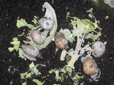 Als het zo zie zijn het wijngaardslakken, deze zijn beschermd in Nederland/Belgie door de flora en faunawet. Ik kan niet goed zien of je ze in de tuin hebt of in een bak. ;)
